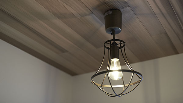 水廻りの入口にある洗面台はアンティークなランプをつけてナチュラルな雰囲気に仕上げました。動線がすごくいいので動きやすい上収納プランも考え抜かれているのがいいですね。毎日が快適です。